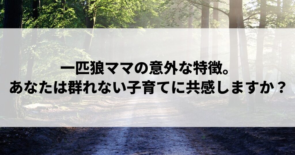 一匹狼ママの意外な特徴。あなたは群れない子育てに共感しますか?